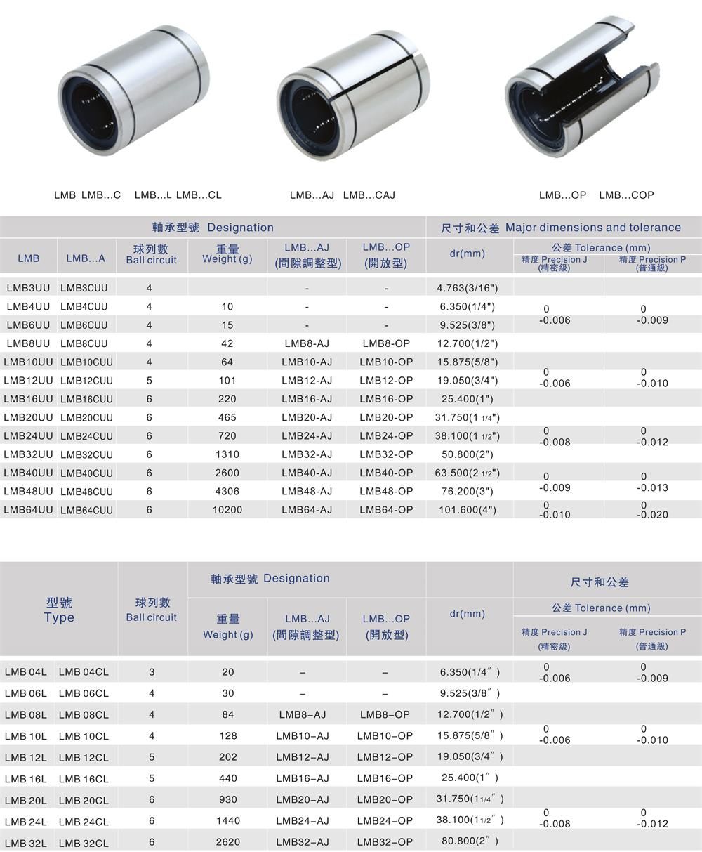 LMB-UU/LMB-LUU/LMB-CUU/LMB-CLUU直線軸承是用金屬做成的,是一種以低成本生產(chǎn)而換取高效益的直線運(yùn)動(dòng)系統(tǒng),用于圓柱軸與無(wú)限行程之間配合使用。廣泛應(yīng)用于紡織、食品包裝、精密機(jī)床、印刷、精密機(jī)械等工業(yè)生產(chǎn)上的滑動(dòng)部件,就是一種直線運(yùn)動(dòng)系統(tǒng),在此其中,由于承載球與軸承外套點(diǎn)接觸后,鋼球就以最小的摩擦力滾動(dòng),組織滾動(dòng)過(guò)快而得到不到效果,所以,直線承載的摩擦力是很小的且比較穩(wěn)定,不會(huì)隨著軸承速度而變化,平穩(wěn)直線運(yùn)動(dòng)都是靈敏度高、精度高,優(yōu)點(diǎn)雖然頗多,但直線軸承消耗也有局限性,主要是因?yàn)檩S承沖擊載荷能力比較差,而自身的承載能力也是比較差的,所以這是需要改動(dòng)的,修復(fù)自身缺點(diǎn),其次呢,直線軸承在高速運(yùn)動(dòng)時(shí)振動(dòng)幅度高,噪聲大,很不穩(wěn)定,萬(wàn)事都有兩面性。