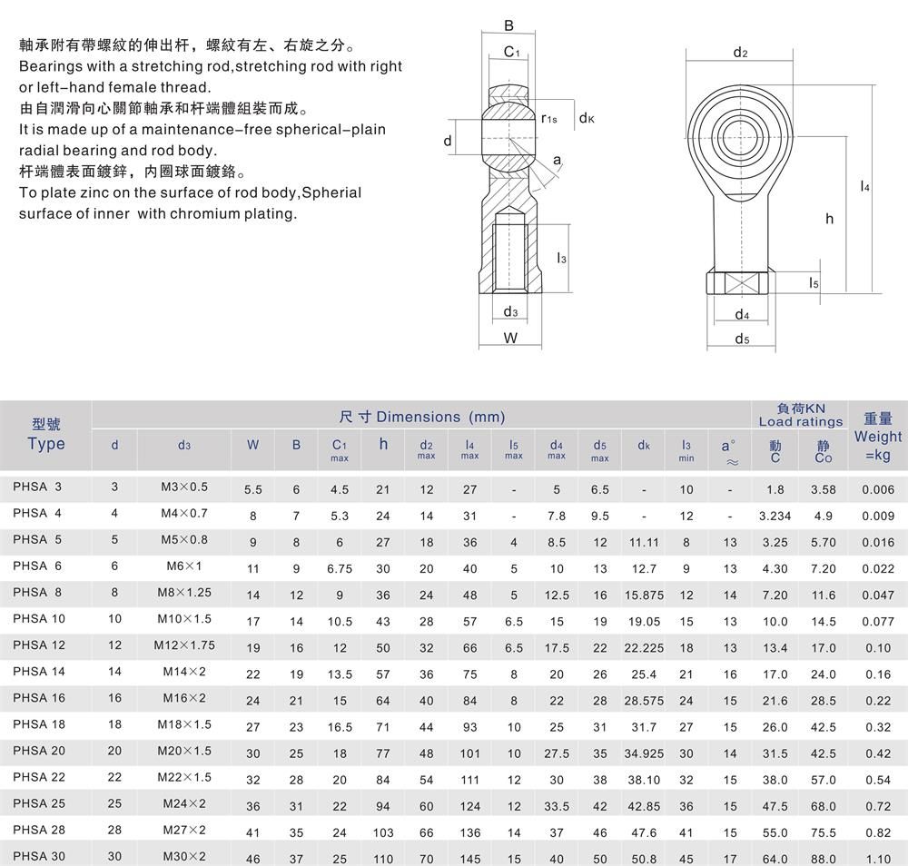 PHSA內(nèi)螺紋自潤滑桿端關(guān)節(jié)軸承是關(guān)節(jié)軸承中的一個支類,是帶有裝于桿端關(guān)節(jié)軸承,關(guān)節(jié)軸承的意思就是球面滑動軸承,具有球形滑動球面接觸表面的內(nèi)、外圈組成基本型關(guān)節(jié)軸承,能承受很大的負荷,在工作中不易損壞。復(fù)合材料是鑲在內(nèi)圈的外球面上,在工作中關(guān)節(jié)軸承可以產(chǎn)生自潤滑,其作用是用于速度較低的滑動運動和擺動運動,同時可以在一定角度范圍內(nèi)進行傾斜運動,自潤滑關(guān)節(jié)輔承一般應(yīng)用于水利工業(yè)、專業(yè)機械等行業(yè)領(lǐng)域,軸殼孔和支撐軸其心度較大時,依然可以進行正常工作,為什么會這樣,因為關(guān)節(jié)軸承傾斜角度大,其球形滑動時,接觸面積也大,所以大多數(shù)關(guān)節(jié)軸承采用了特殊的工藝處理方法,好應(yīng)用于一些重要場合。
