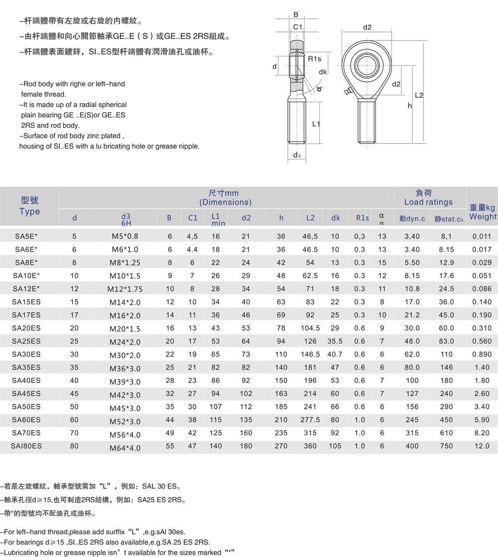 SA-E/SA-ES桿端關(guān)節(jié)軸承是一種有著特殊結(jié)構(gòu)組成的滑動式軸承,它的結(jié)構(gòu)相對比較簡單,滾動軸承要復(fù)雜一點,其主要是由一個有內(nèi)球面的外圈和一個有外球面的內(nèi)圈組成,根據(jù)其不同的類型和結(jié)構(gòu),在工作中能承受較大的負(fù)荷,也可以承受徑向負(fù)荷、軸向負(fù)荷、軸向同時存在的聯(lián)合負(fù)荷模式。