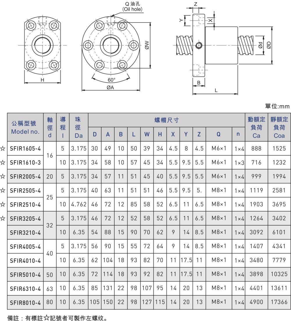 SFI是滾珠螺桿中的一種型號,滾珠螺桿英文名Ballscrew,別名又叫球螺桿、導螺桿,是一種摩擦性小的鋼珠介于螺帽與螺桿之間反復做運動,將傳統螺桿之滑動接觸轉換成滾動接觸,然后再將螺帽內的鋼珠的回轉運動轉為直線運動的傳動機械組件。滾珠螺桿具有定位低污染、精度高、高壽命和可做高速正逆向的傳動及變換傳動等特性,在機械領域具有重要作用;根據以上特性,滾珠螺桿已成為近來精密科技產業及精密機械產業以及相關行業的定位及測量系統上的重要零組件之一。