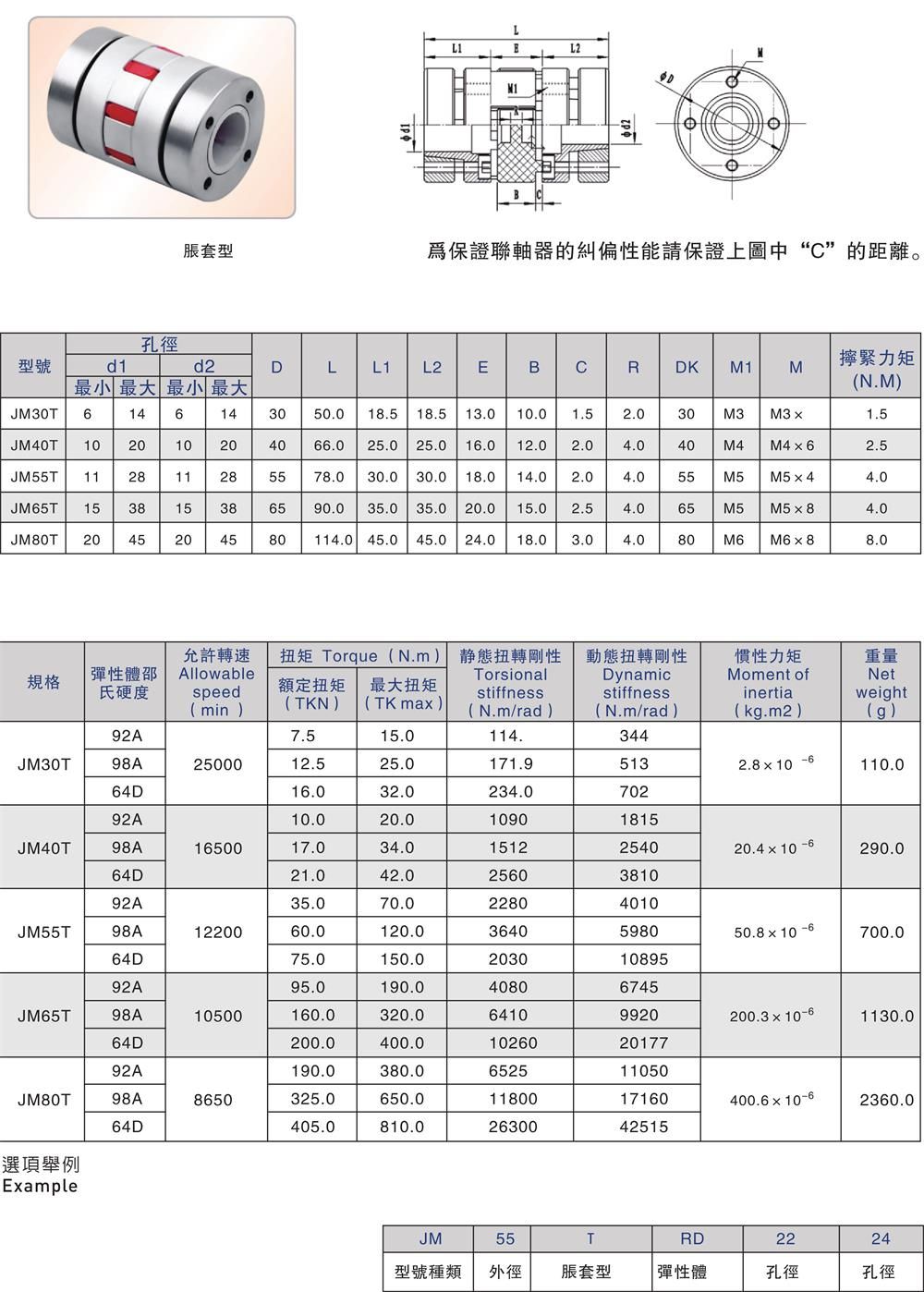 JM-T雙節(jié)無(wú)齒隙彈性體聯(lián)軸器主要是指聯(lián)接兩軸或軸與回轉(zhuǎn)件,一同回轉(zhuǎn)在傳遞運(yùn)動(dòng)和動(dòng)力過(guò)程中,在非正常情況下會(huì)脫離開(kāi)而正常情況下不脫開(kāi)的一種機(jī)器裝置,它也可以作為一種安全防護(hù)裝置,從而使聯(lián)接機(jī)件承受過(guò)大的載荷而不壞掉,起過(guò)載保護(hù)的作用。聯(lián)軸器又稱(chēng)聯(lián)軸節(jié),是機(jī)械關(guān)節(jié)所在地,同時(shí)將機(jī)構(gòu)不同中的從動(dòng)軸和主動(dòng)軸牢固的鏈接起來(lái)一同旋轉(zhuǎn),并傳遞扭矩和運(yùn)動(dòng)的機(jī)器機(jī)械部件,有時(shí)用聯(lián)接軸等其它零件(如帶輪、齒輪等)也是可以的,常由兩半塊合成,緊固在兩軸端,再通過(guò)一些特殊的方式將兩半聯(lián)接起來(lái),它用途還更深入,可兼有補(bǔ)償兩軸之間由于工作時(shí)的變形、制造安裝不精確或是熱膨脹導(dǎo)致高溫等原因所發(fā)生的偏移以及工作中帶來(lái)的緩和沖擊和吸振,保證機(jī)器安全。其緩沖性,對(duì)于經(jīng)常在工作載荷變化的場(chǎng)合,聯(lián)軸器是可以減振、緩沖的彈性元件,來(lái)保護(hù)機(jī)器運(yùn)作少受損傷,最大效果達(dá)到不受損傷,安全可靠,結(jié)構(gòu)簡(jiǎn)單,易拆易裝,維護(hù)方便。